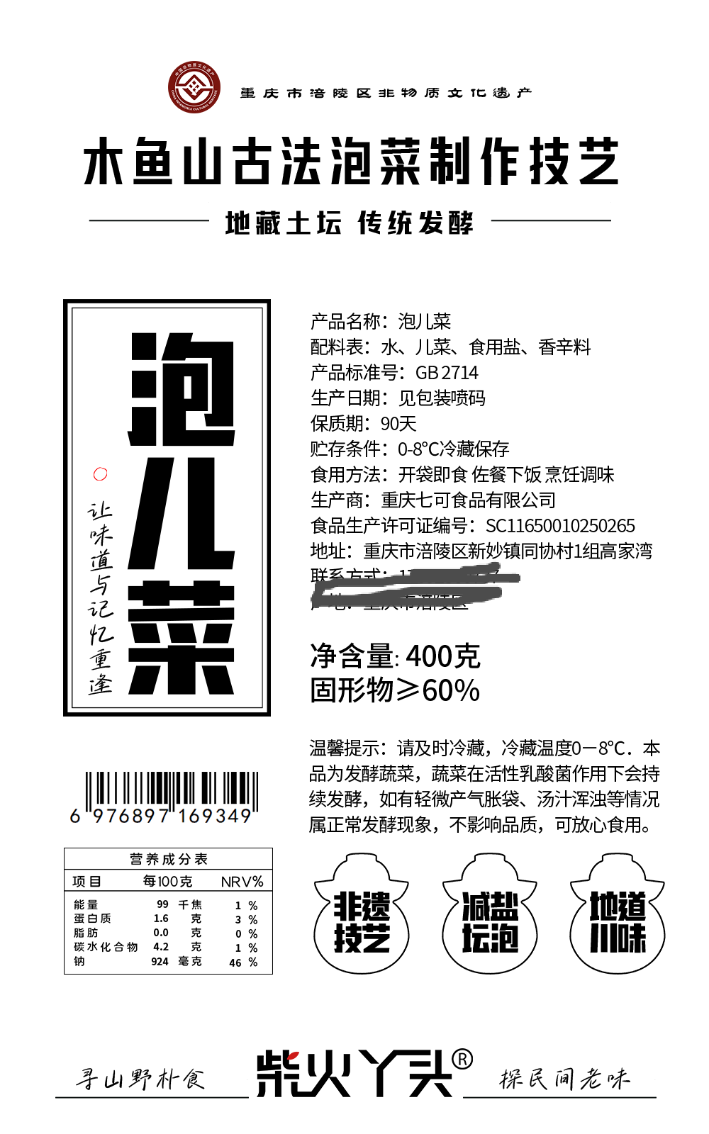 柴火丫頭泡兒菜400g(固形物60%)